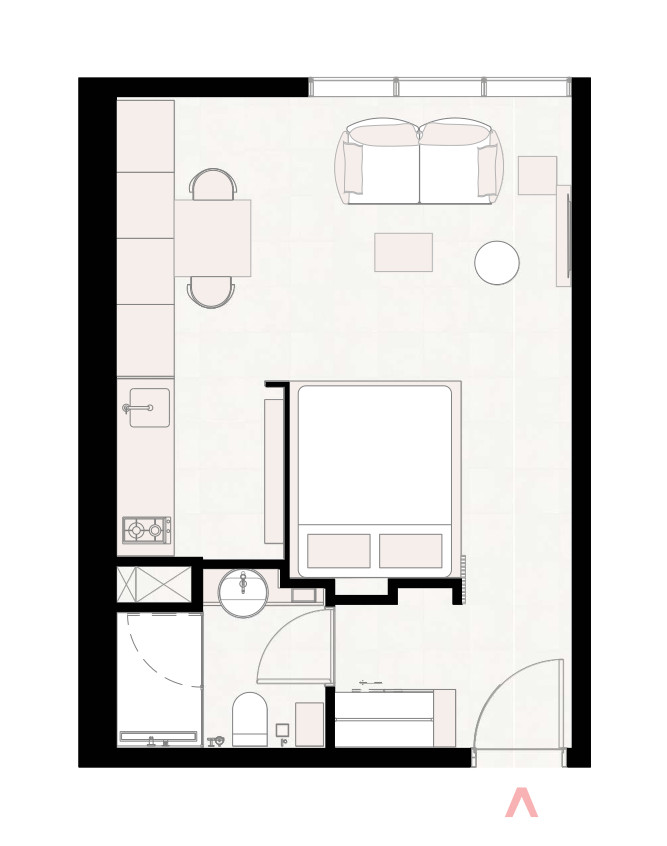 Studio apartments and one-bedroom apartments are among the fully-furnished housing options. Each apartment includes one complimentary parking space. The kitchens will feature contemporary SMEG equipment, a cooktop, heat-resistant surfaces, and abundant storage space. Also, it is possible to acquire an entire floor.