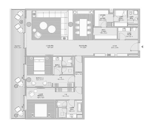 The houses feature a circular or linear entrance, a hallmark Armani design that serves as a transition between the public and private portions of the apartment, as well as generously scaled heights of at least 3 metres for living areas. Bedrooms have luxury built-in closets and wardrobes, with the majority of master bedrooms including a walk-in closet.